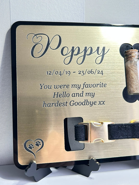 Pet Memorial Plaque, Pet fur Keepsake, Dog Memorial Collar Frame With Photo Gold