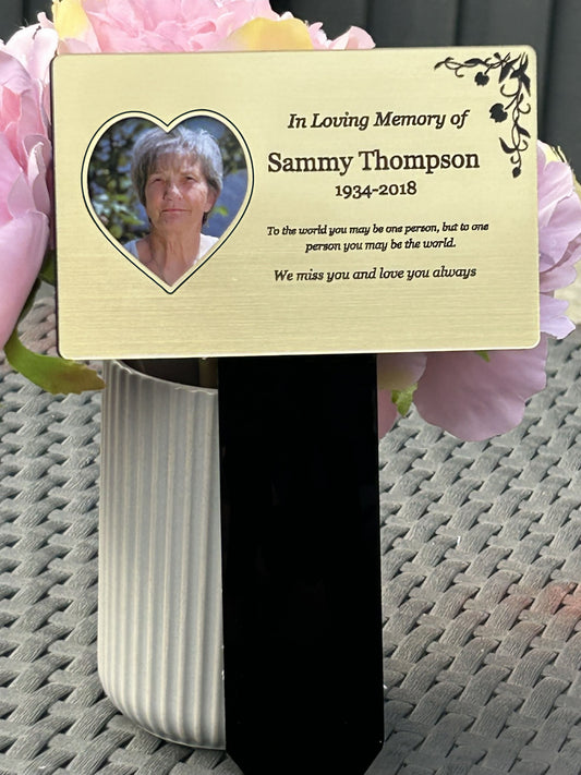 Personalised Memorial Plaque with photo, Garden Outdoors Plaques, Gold plaque for graves, Dad, Father, Mum, Pets