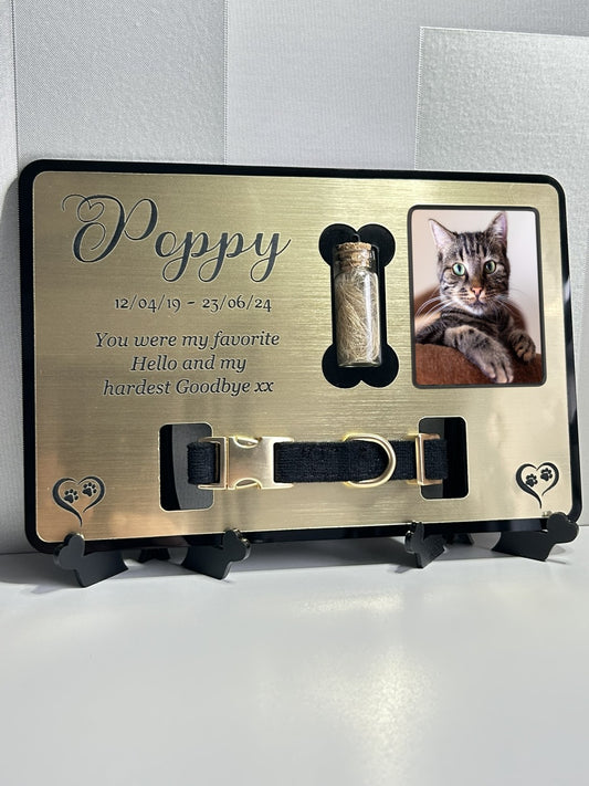 Pet Memorial Plaque, Pet fur Keepsake, Cat Memorial Collar Frame With Photo Gold