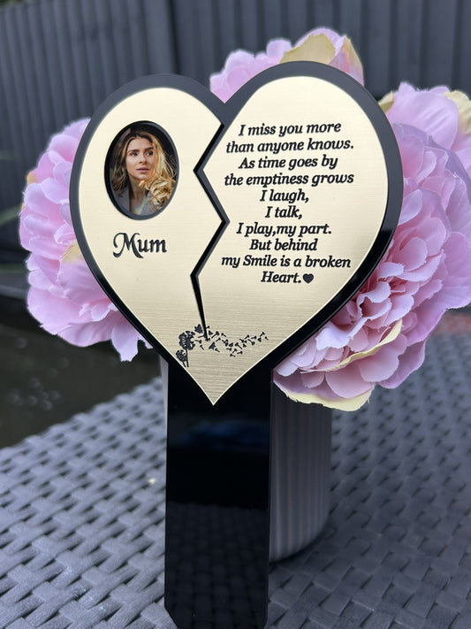 Personalised Memorial Plaque, Heart Plaque with Photo Outdoors Plaques, Remembrance Sign, marker, Dad, Father, Mum, Pets Gold