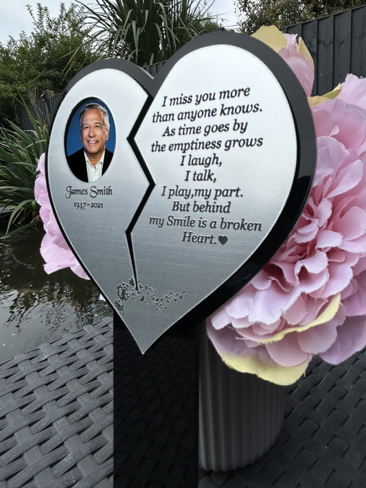 Personalised Memorial Plaque, Heart Plaque with Photo Outdoors Plaques, Remembrance Sign, marker, Dad, Father, Mum, Pets Silver