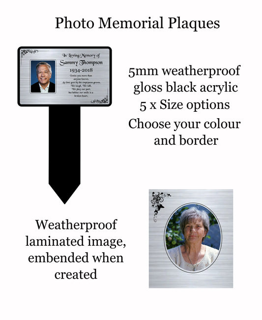 Memorial Photo Plaque, Memorial Plaques for graves, Remembrance, Silver, Straight Shape