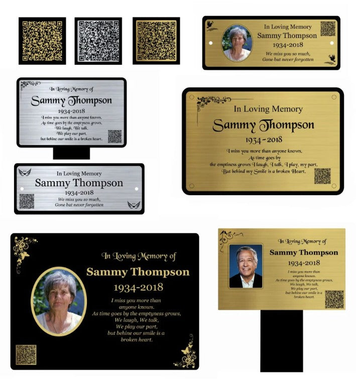 We have a large range of designs and styles, all with an engraved QR code, when scanned this takes you to a dedicated digital tribute page, No hidden fees or monthly subscriptions