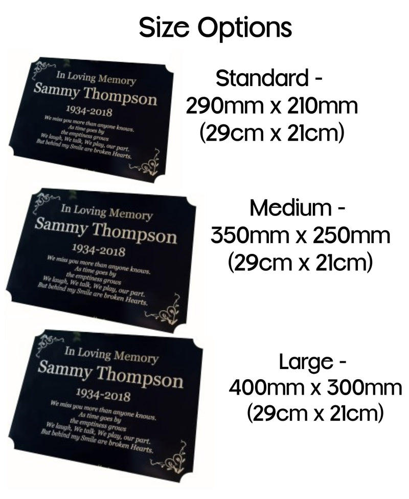 Choose from over 15 engraved border or graphic options, should you have a specific border contact us direct for this to be added