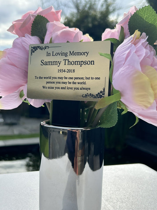 Memorial Plaque, Memorial Plaques for graves, Remembrance, Silver, Straight Shape