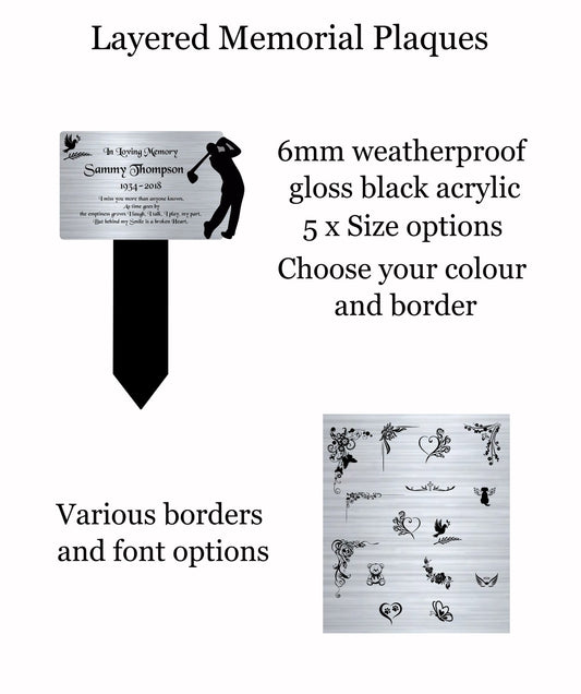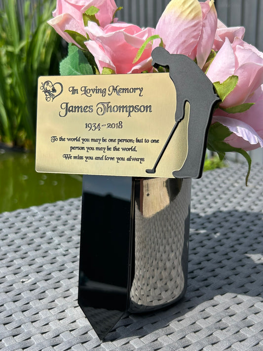 Personalised Memorial Plaques, Silver Golf memorial plaque, Garden Spike, funeral remembrance in loving memory