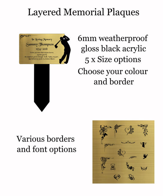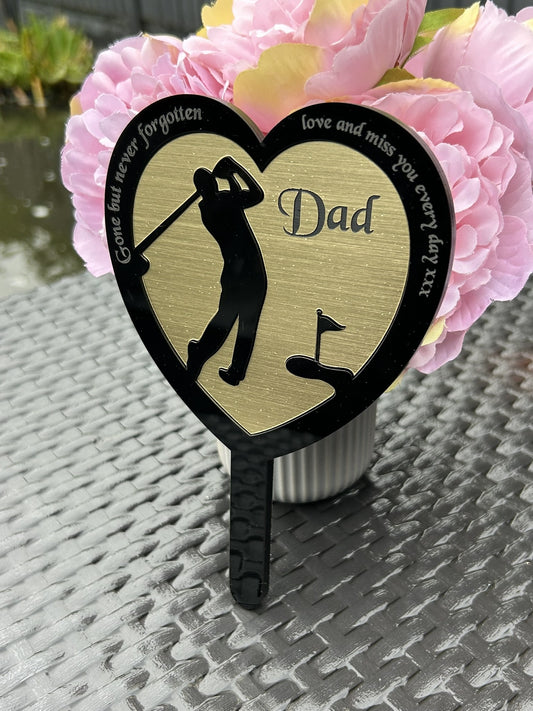 Personalised Memorial Plaques, Gold Golf memorial plaque, Garden Spike, funeral remembrance in loving memory