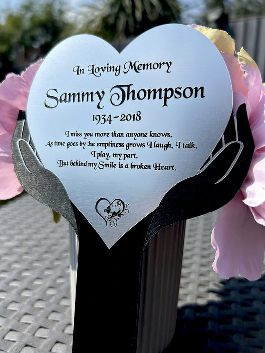 Personalised Memorial Plaque, Heart Garden Outdoors Plaques, Remembrance Sign, marker, Dad, Father, Mum, Pets Silver