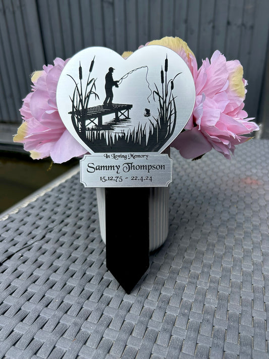 Memorial Plaque, Fishing Plaques, Remembrance Sign, Graver marker, Dad, Father, Mum, Pets, Heart, Silver
