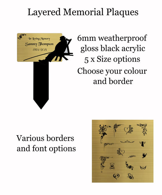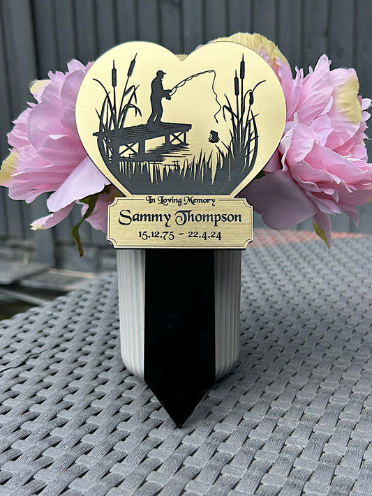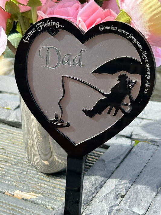 Memorial Fishing Plaque, Mum, Dad, Son, Brother, Uncle, Garden Spike, Memorial Plaques