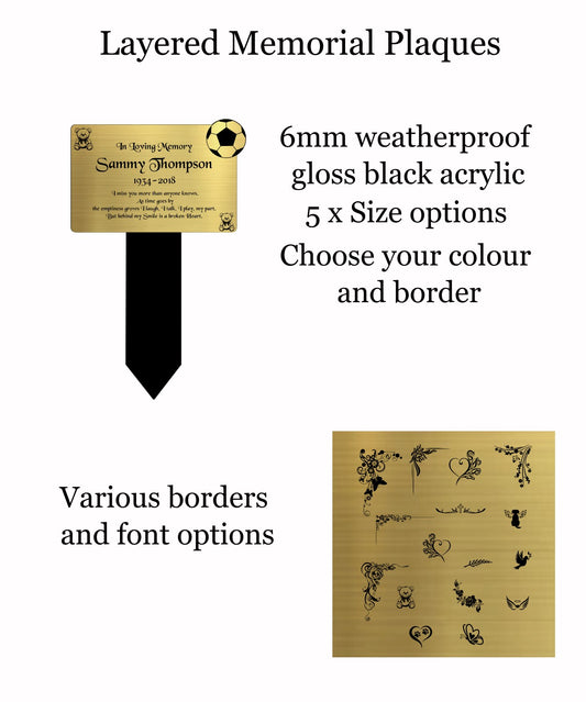 Memorial Plaque, Memorial Plaques for graves, Remembrance, Gold, Rounded, Football