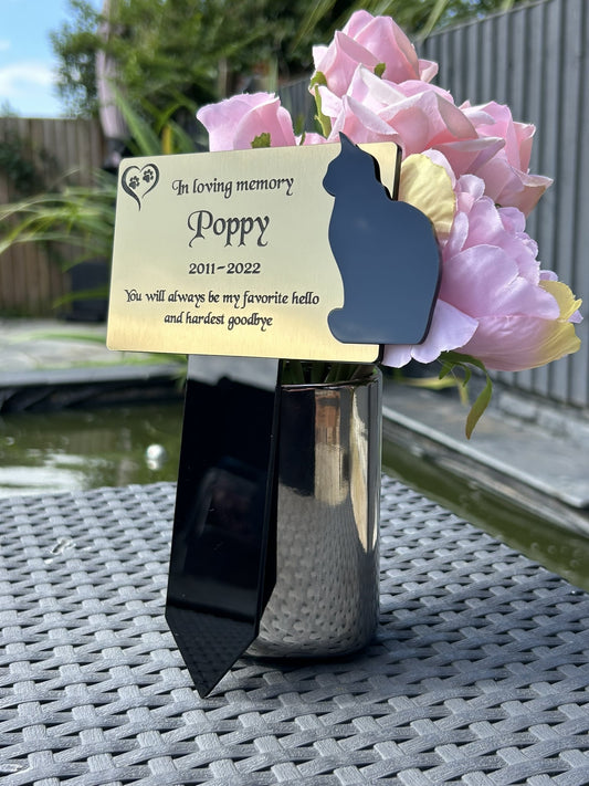 Personalised Pet Cat Memorial Plaque, Ground Stake, Grave Marker for Cemetery or Garden