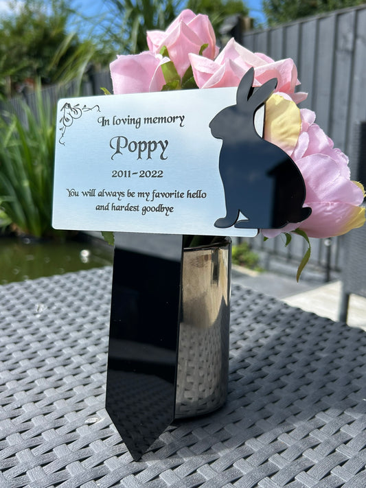 Pet Memorial Plaque, Personalised Outside Grave Bunny Rabbit, Garden Marker Plaque Gift Silver
