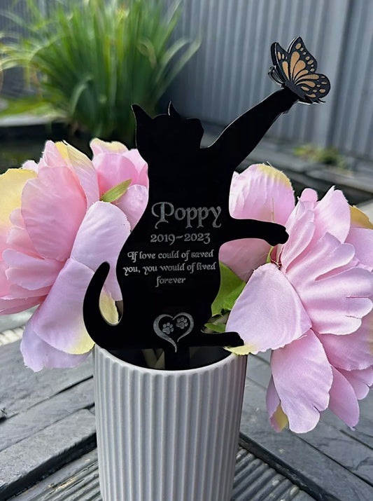 Pet Cat Memorial Butterfly Plaque, Pet memorial gifts, Grave Marker for Cemetery Gold, Silver
