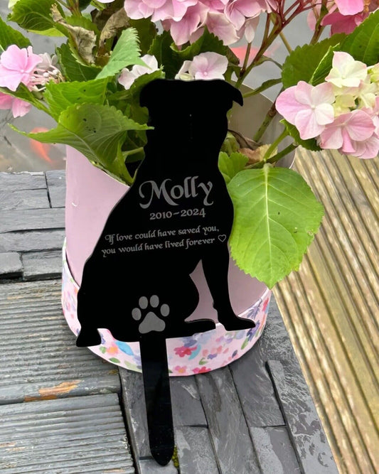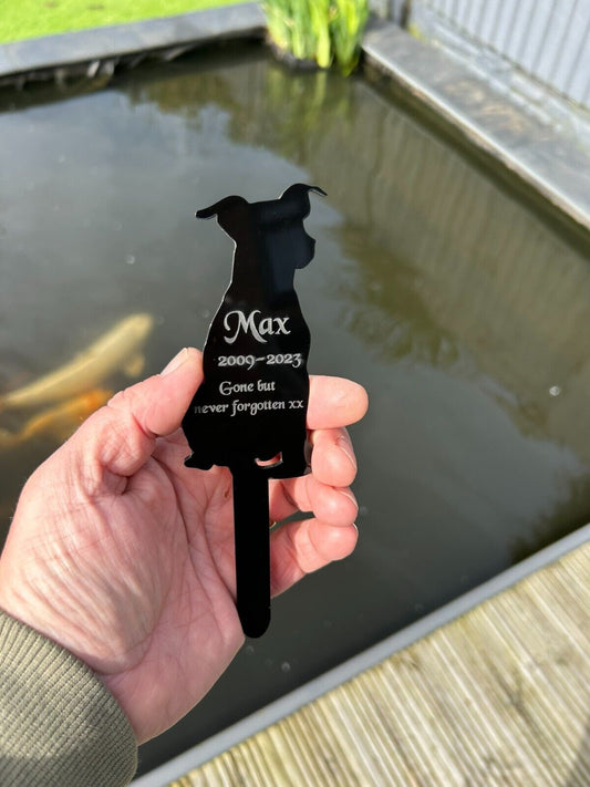 Personalised Pet, Staffordshire Bull Terrier Dog Memorial Plaque, Ground Stake, Grave Marker for Cemetery Or Garden