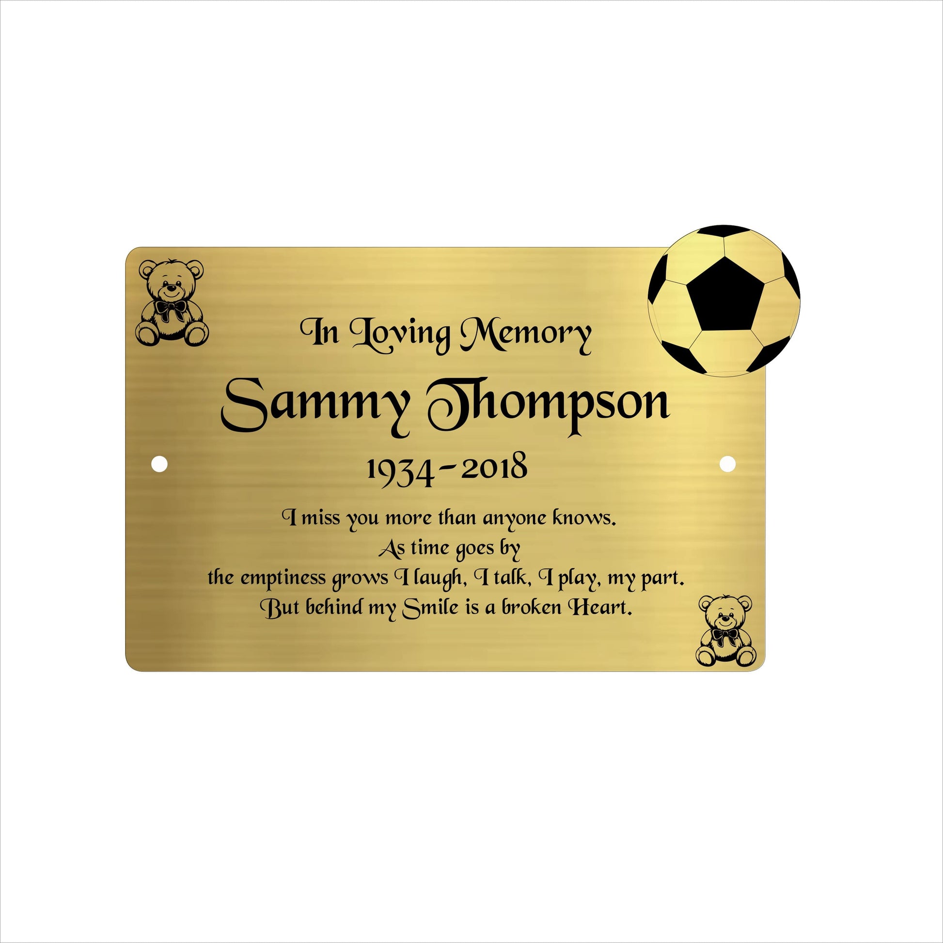Memorial Bench Plaque, 6x4 Engraved Bench Plaques, Engraved Tree Sign, Weatherproof, Grave, Gold Football