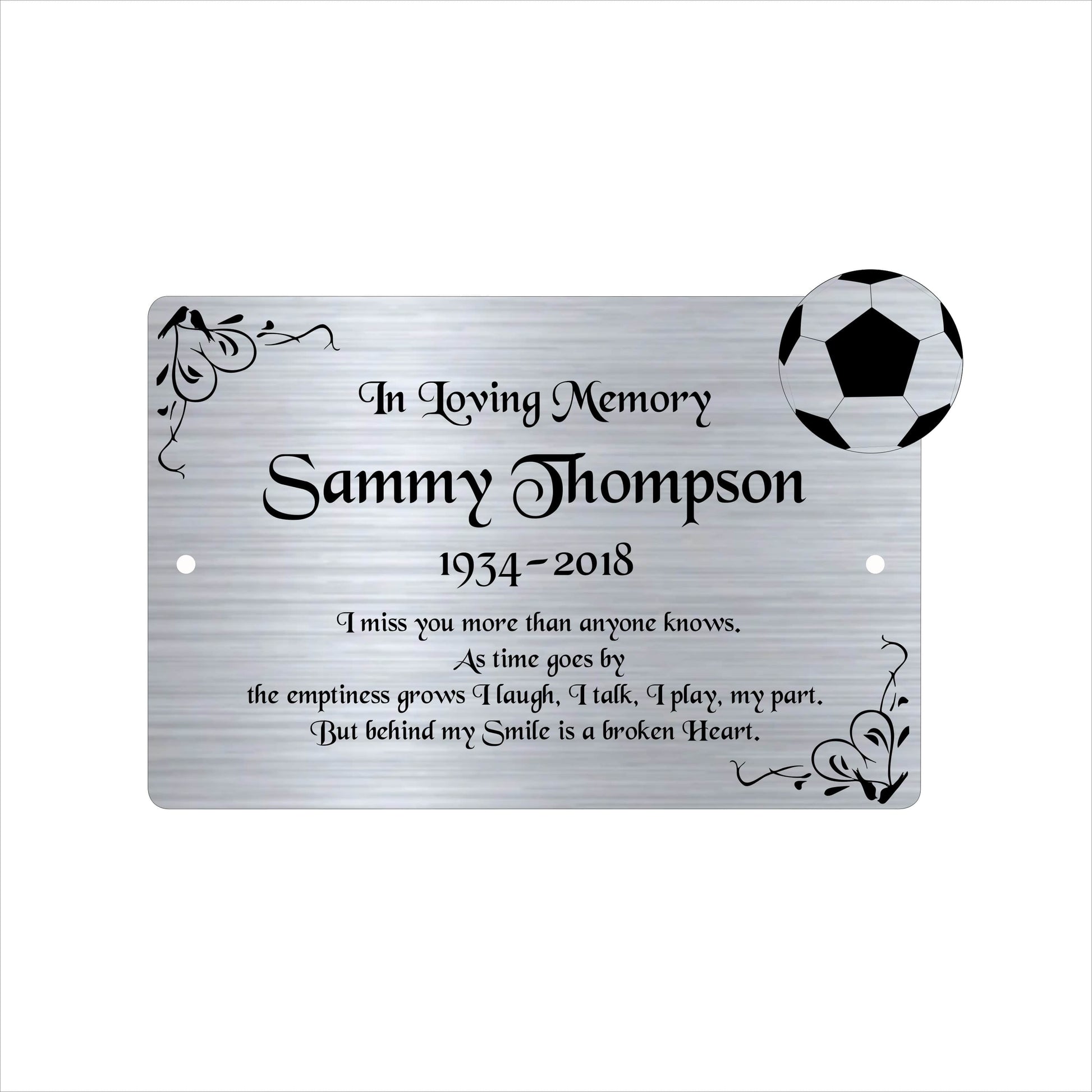Football Memorial Bench Plaque for graves and remembrance.