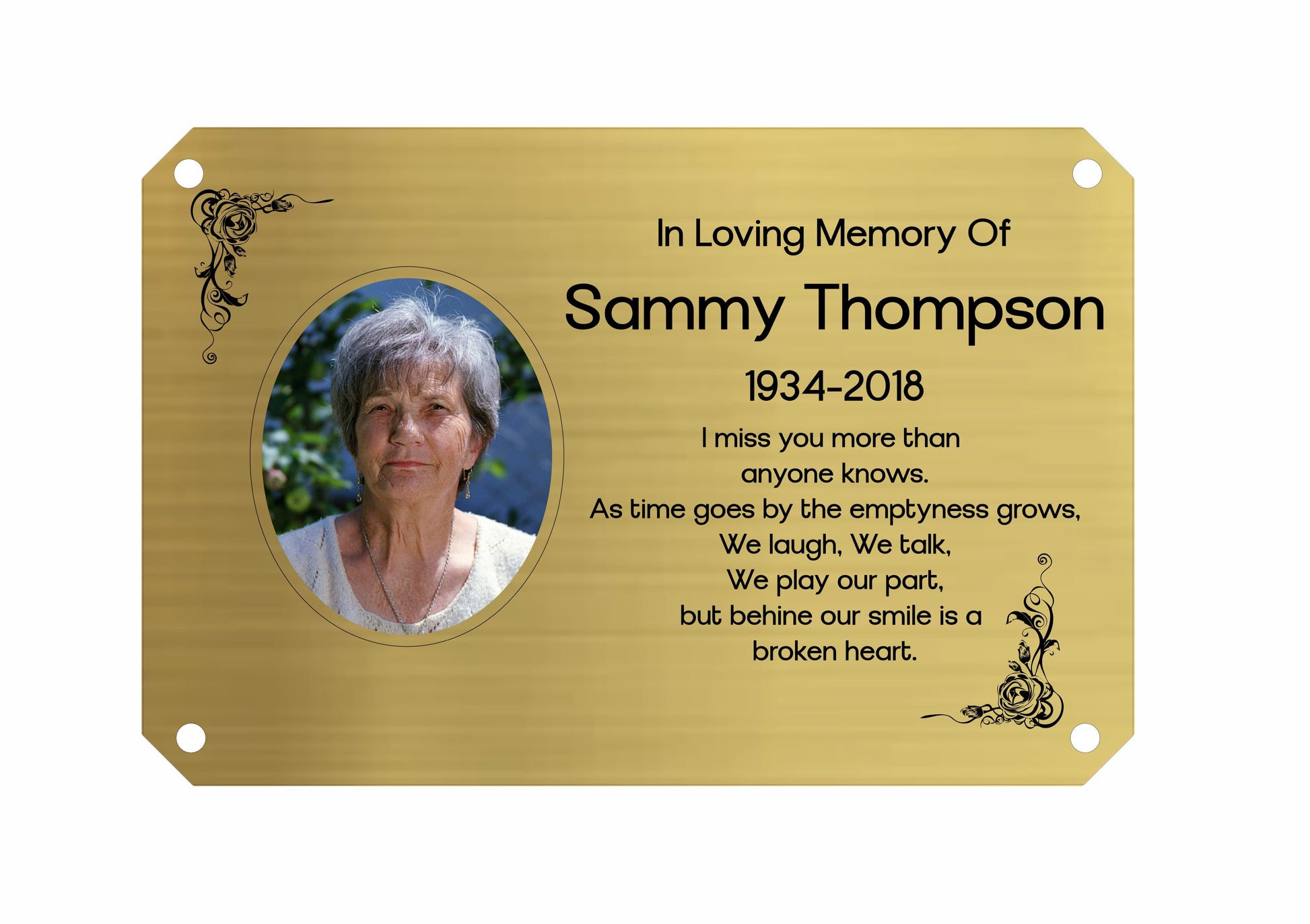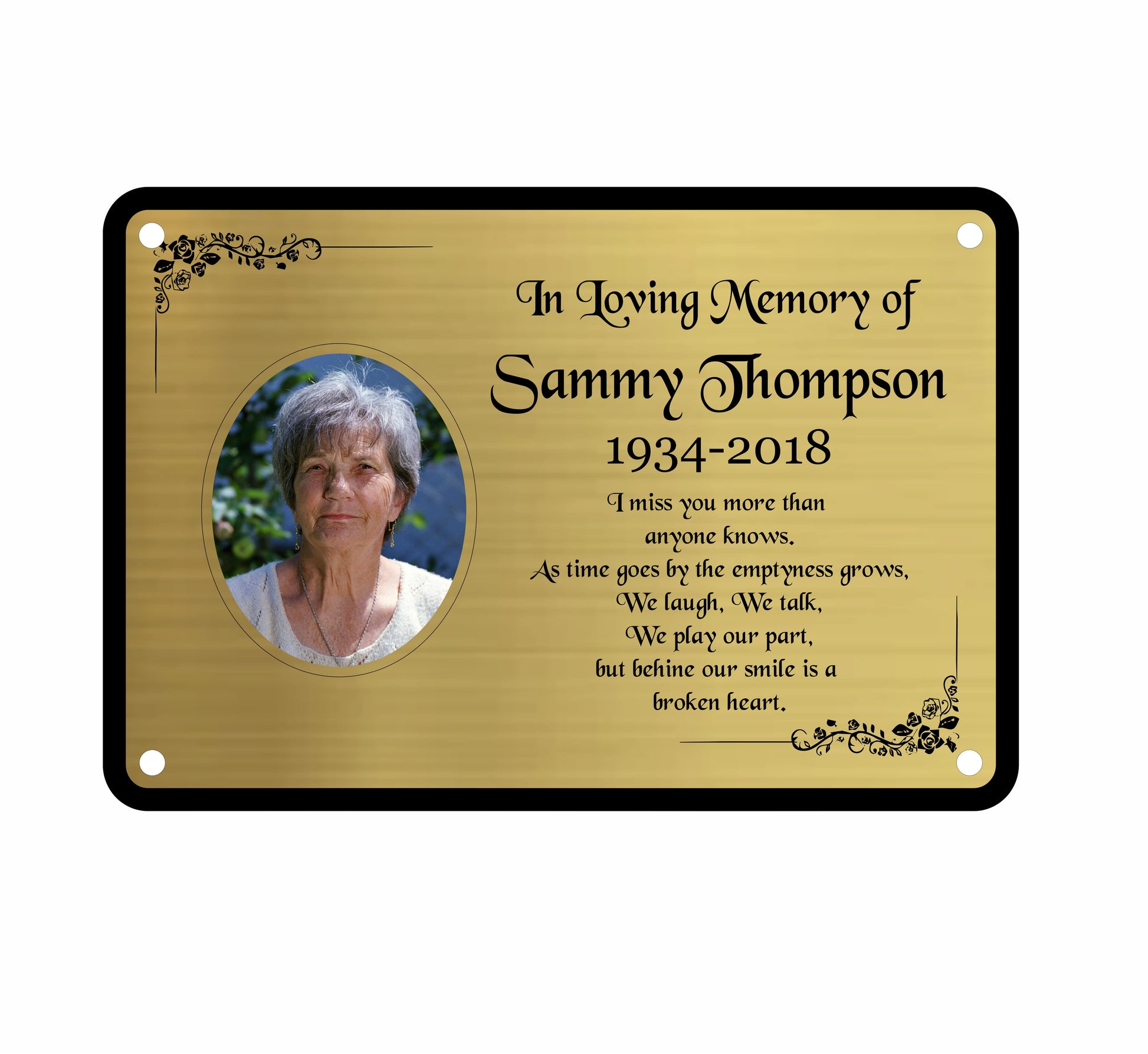 Memorial Photo Plaque, 6x4 Engraved Bench Plaques, Engraved Tree Sign, Gold, Weatherproof, Grave