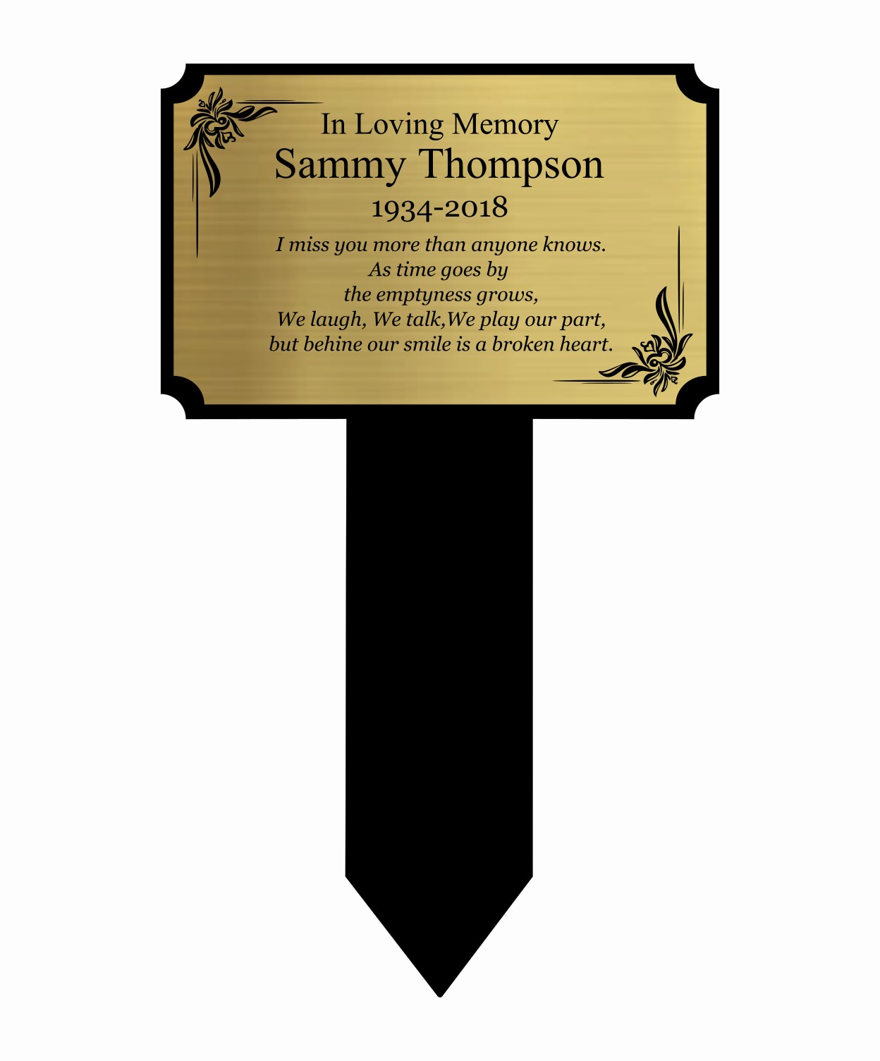 Memorial Plaque, Memorial Plaques for graves, Remembrance, Gold, Inverse Shape