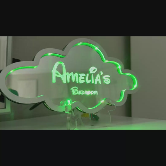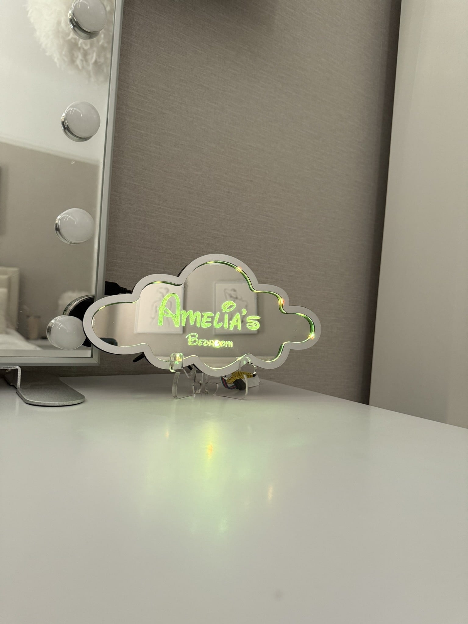Personalised LED Mirror, Cloud Shape, Kids Bedroom Sign, Plaque, Wedding, Office, Perfect Gift