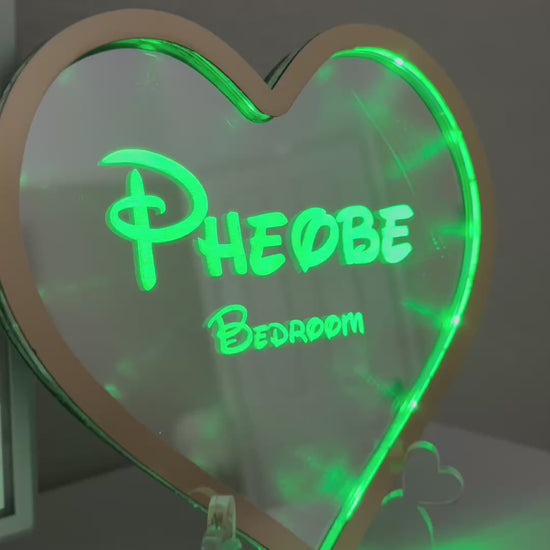Personalised LED Mirror, Heart Shape, Kids Bedroom Sign, Plaque, Wedding, Office, Perfect Gift