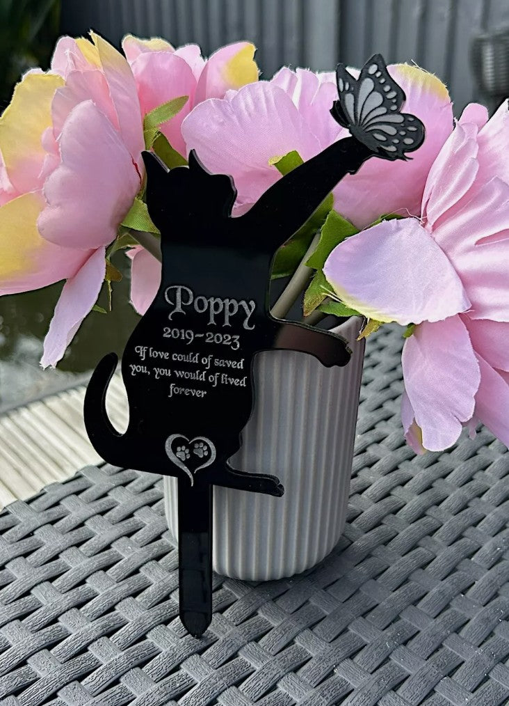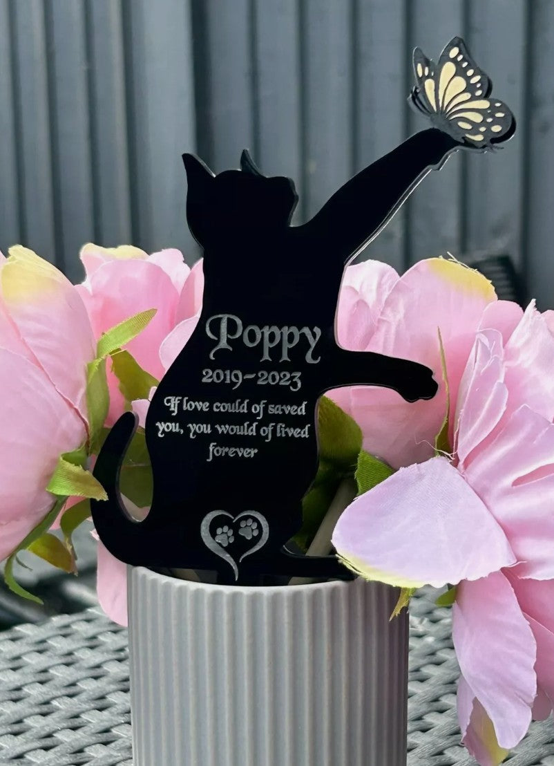 Pet Cat Memorial Butterfly Plaque, Pet memorial gifts, Grave Marker for Cemetery Gold, Silver