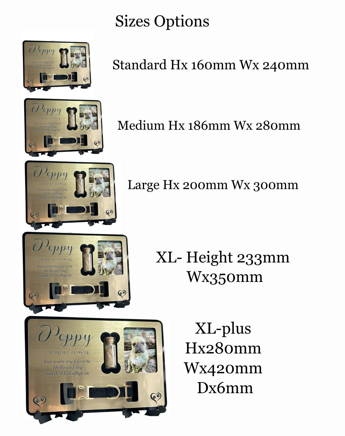 Personalised Pet Memorial Keepsake Gift, with Photo Plaque and Collar mount, includes custom love heart stands