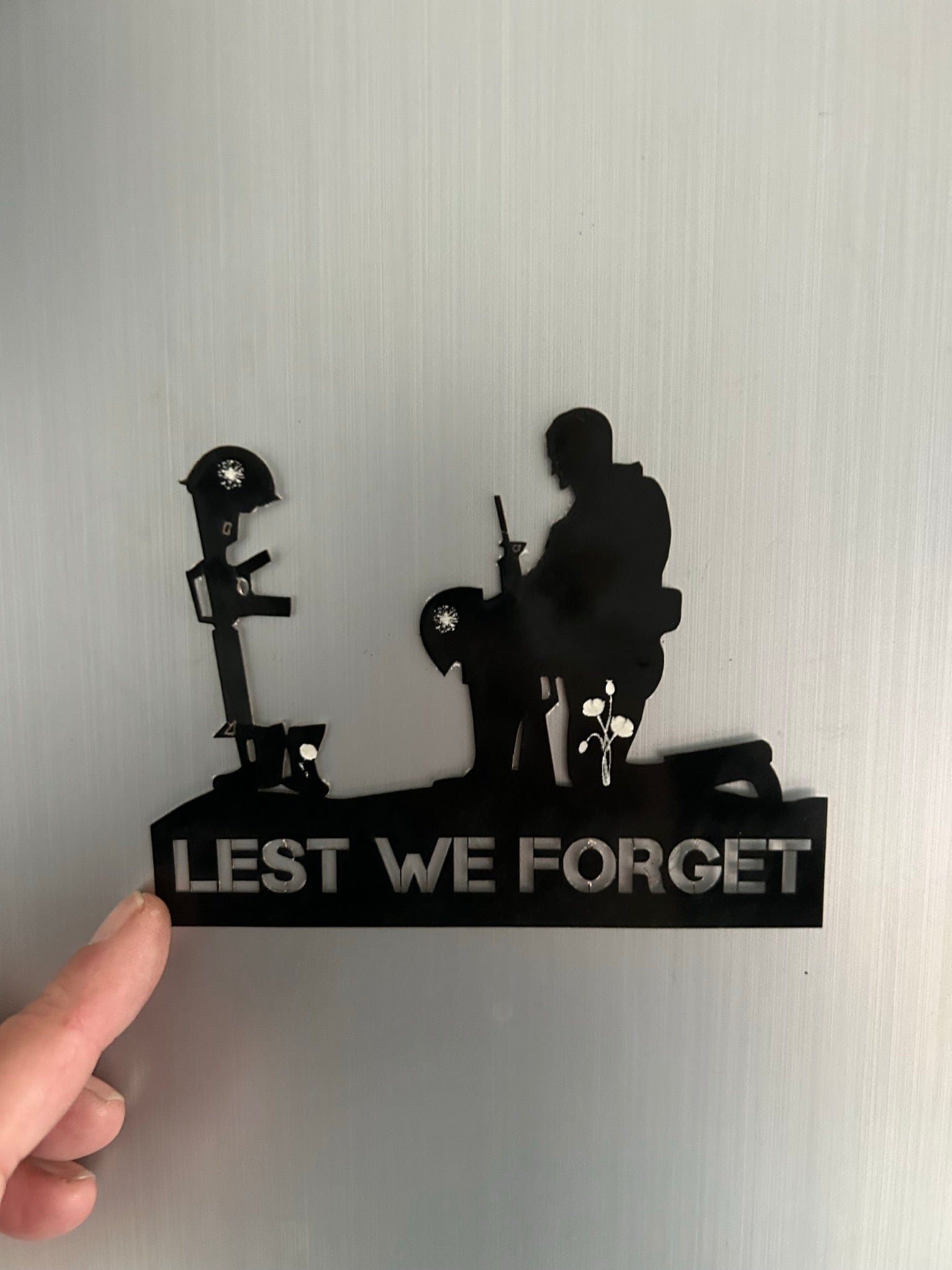 Remembrance Day Memorial Black Acrylic Gloss Lest we forget soldier fridge magnet